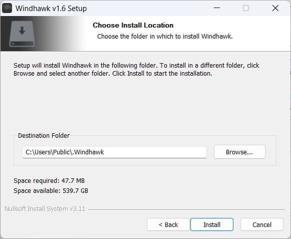 Installation von Windhawk