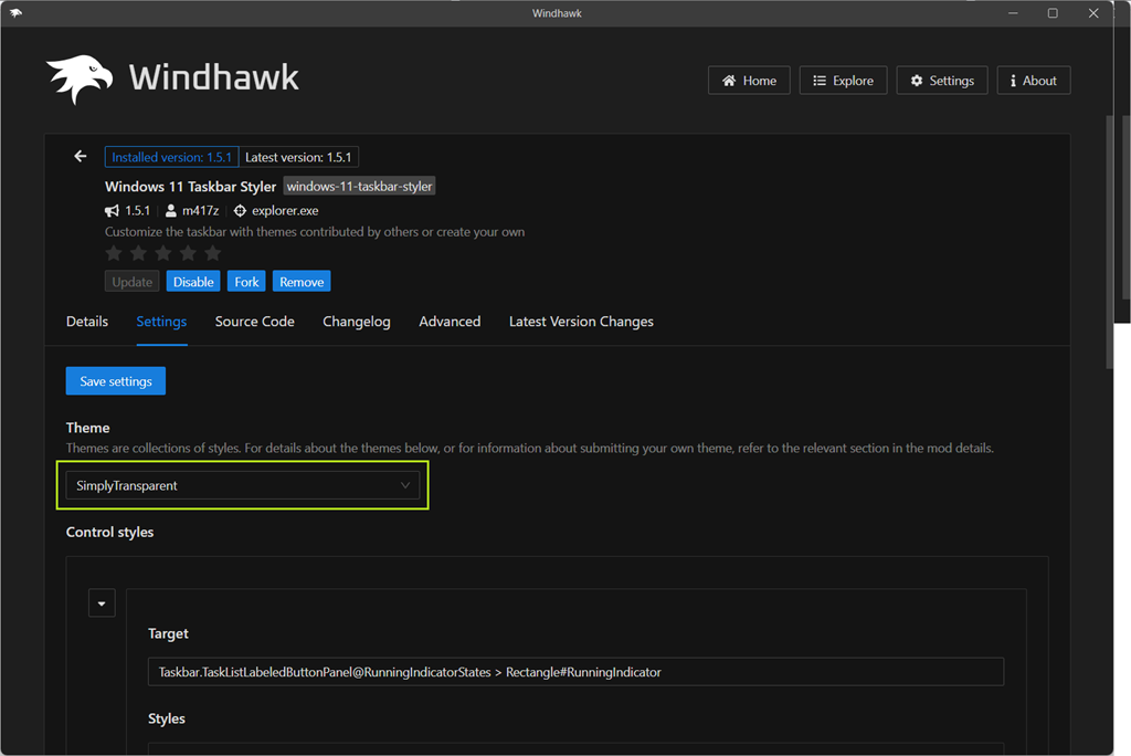Save Settings aktiviert das Theme und damit bleibt nur noch das automatische Start von Windhawk, der allerdings bei der Portable-Version über shell:startup nicht wirklich funktioniert.