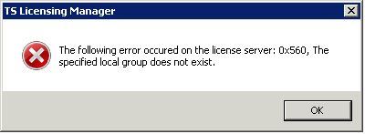 SBS2008: Fixing Error 0x560 – Terminal Server (TS) Licensing Manager