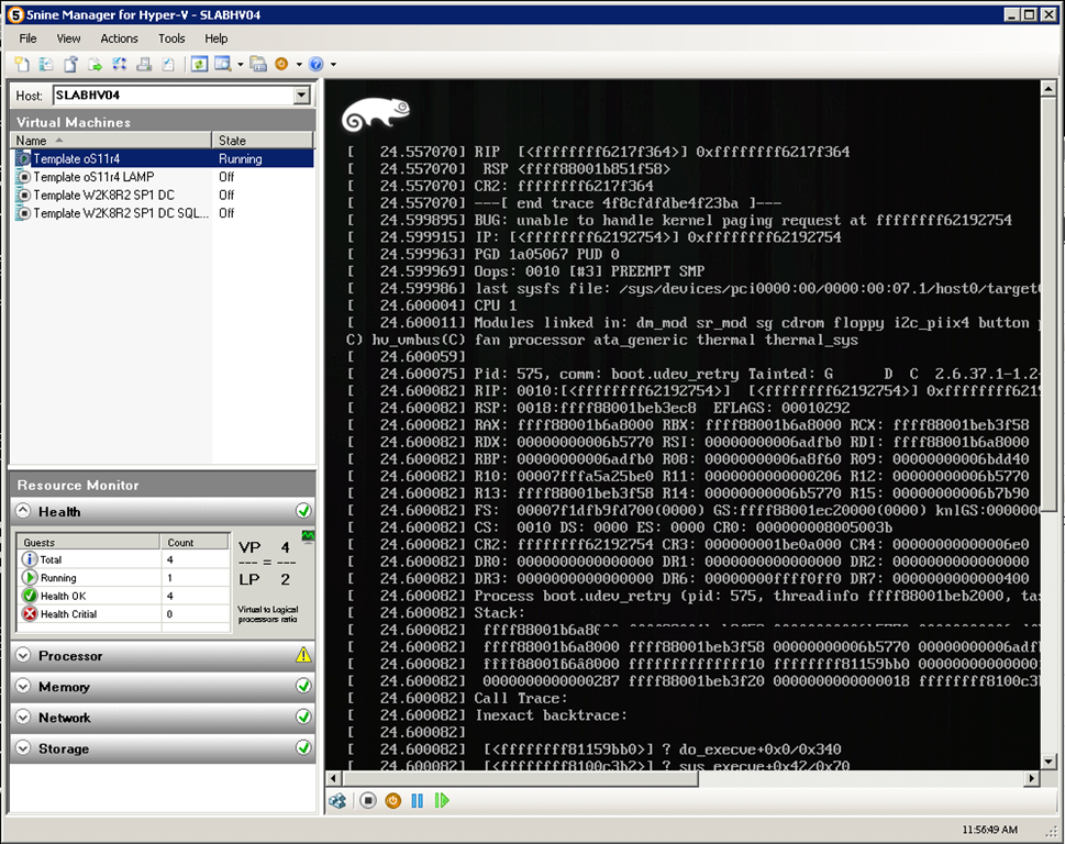 (zu sehen ist hier übrigens OpenSuse 11.4 x64 welches die Hyper-V Integration Components integriert hat und diese auch automatisch lädt)