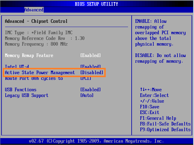 Die Maßnahme welche letztendlich Abhilfe schaffte war die Deaktivierung des Active State Power Managements im BIOS der Server (siehe Screenshot) – löste dann das Problem.