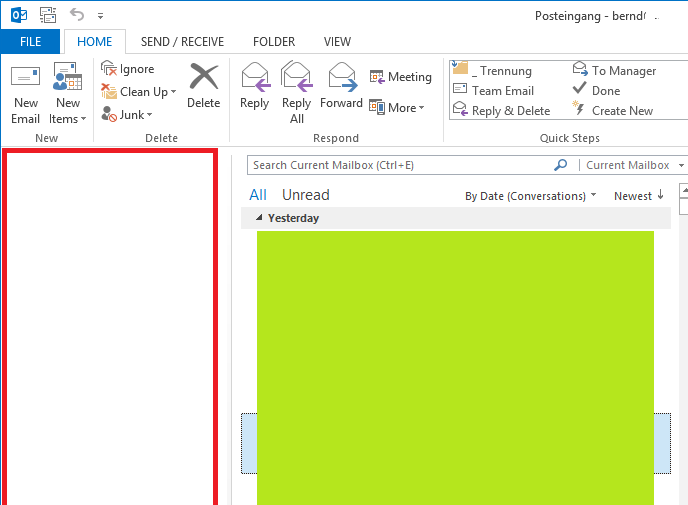Unter Windows 8 mit Outlook 2013 kann die Installation von KB2817630 dazu führen, dass die Ordner auf der linken Seite nicht mehr angezeigt werden.image