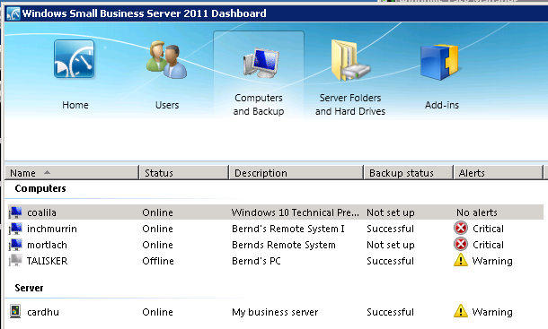 Unter Windows Server 2011 SBS Essentials kann also Windows X problemlos in die Domain integriert werden und auch über das Portal ist ein Zugriff möglich. Lediglich das Backup funktioniert nicht.