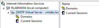 - Nach der Installation wird der SMTP Server über die Internet Information Services (IIS) 6.0 Manager Konsole konfiguriert (Server Manager / Tools / …)
