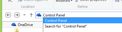 - Im Windows Explorer in die Eingabeleiste Control Panel eingeben