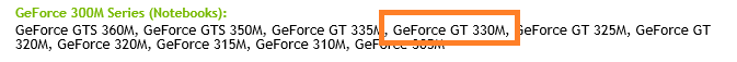 und hier wird auch die GeForce GT 330M als unterstütztes Modell ausgewiesen.
