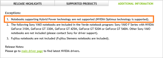 Leider schlug eine Installation des Treibers fehl, sodass ich mich mit den Release Notes und Support Informationen beschäftigen musste. Das Problem in meinem Fall war, dass der Treiber nicht mehr die Hybrid Power Technology unterstützt – welche von Acer in diesem Notebook verwendet wird: