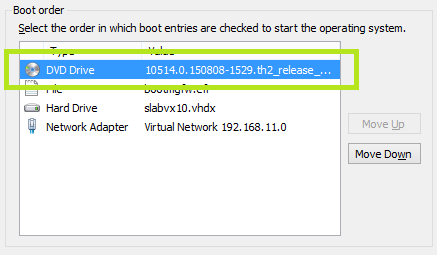 Kürzlich wollte ich eine Generation 2 VM mit einem ISO starten, leider tauchte das ISO File / DVD-Laufwerk nicht unter Firmware / Bootorder auf. Nach ein wenig probieren bin ich auf die Lösung des Problems gestoßen. Ich hatte das ISO im laufenden Betrieb der VM hinzu gefügt. Nach dem Herunterfahren, Löschen und erneutem Hinzufügen des ISOs klappte auch der Start (und damit die Installation von Windows Server 2016 TP3) problemlos.