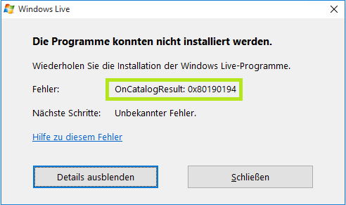 Irgendwie muss man seinen Blog schreiben Winking smile Ich tue das schon immer mit dem Windows Live Writer aus den Windows Live Essentials 2012 (letzte Version). Leider lässt sich unter Windows 10 der Live Writer nicht mehr installieren und quittiert die Installation mit folgender Fehlermeldung: 0x80190194image