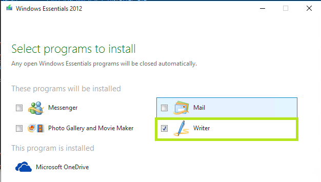 Danach steht der Live Writer auch unter Windows 10 zur Verfügung…