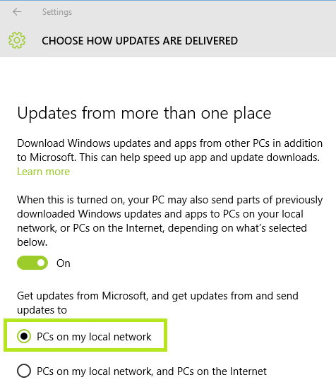 Einstellungen/Updates und Sicherheit/Windows Update/Erweiterte Optionen/Übermittlung von Updates auswählen/PCs in meinem lokalen Netzwerk