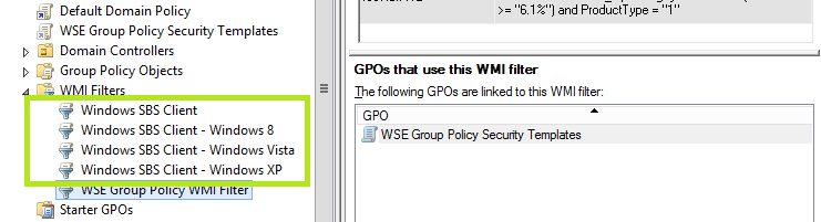 Nicht vergessen sollte man an dieser Stelle die Bereinigung der GPOs des SBS 2008 inkusive der alten WMI Filter (grün umrandet).