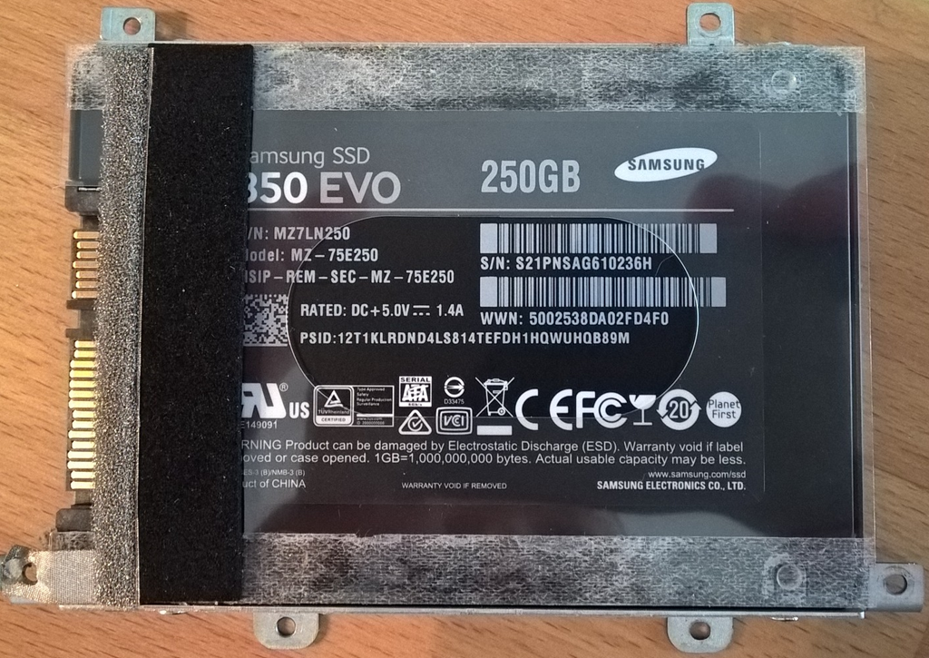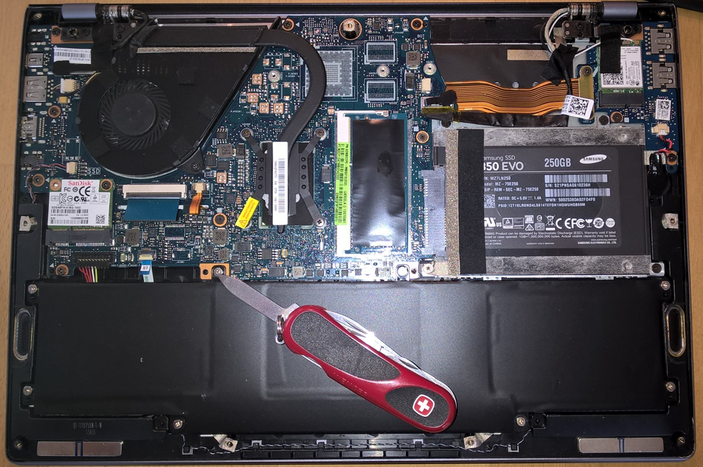Eigentlich gehöre ich ja zur Fraktion Schraubendreher und Lötkolben, umso mehr hat es mich gefreut dieses mal wieder ein bisschen Hardware verändern zu dürfen. Konkret ging es um ein ASUS Zenbook UX320L welches mit einer Kombination aus 16GB SanDisk SSD sowie 1TB Festplatte ausgerüstet war. Trotz i5 und 8GB RAM war das Teil irgendwie zäh im Betrieb und so war schnell der Gedanke geboren die Festplatte gegen eine SSD (Samsung EVO 256GB) aus zu tauschen.