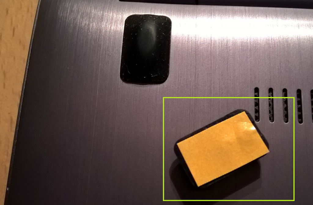 Da sich die Gummifüße in einer Art Wanne am Bodendeckel befinden und das Notebook darauf steht, könnte das Klebeband ausreichen – was ich aber im Detail noch beobachten muss.