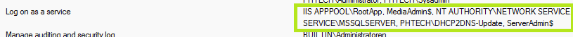 Da es sich um eine kleine Umgebung handelt, habe ich das Recht allen lokalen Diensten (NT SERVICE\ALL SERVICES) eingeräumt und dass über die Default Domain Controller Policy konfiguriert, was die Berechtigung wiederum auf diesen einen DC (SBS Umgebungen haben in der Regel nur einen) einschränkt. Tritt das Problem auf Member Servern auf, dann hierzu entweder die Default Domain Policy, oder einfach die Local Policy auf dem Server selbst anpassen.