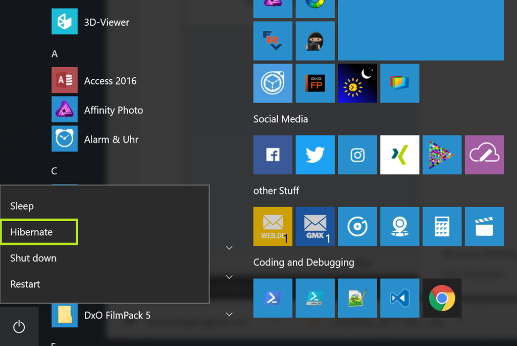 Unter Windows 10 ist der Hibernation Mode erst einmal nicht aktiviert. Diesen nutze ich aber sehr gerne, da ich damit zum Beispiel mein Surface Book definitiv “schlafen” legen kann und es nicht aus welchem Grund auch immer im Rucksack vor sich hinköchelt …