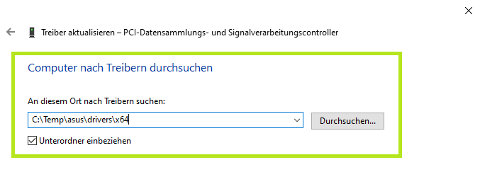 Letztendlich habe ich mir von ASUS einen Treiber unter diesem Link geladen, er ist zwar für ein anderes Modell sollte aber nach Analyse der INF-Datei auch hier funktionieren. Im Englischen wird der Treiber wie folgt genannt: