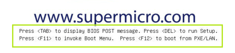 Die Möglichkeit diese als Boot Device zu verwenden, muss aber erst einmal im BIOS des Servers eingestellt werden. Dazu beim Start die Taste DEL bzw. ENTF drücken.