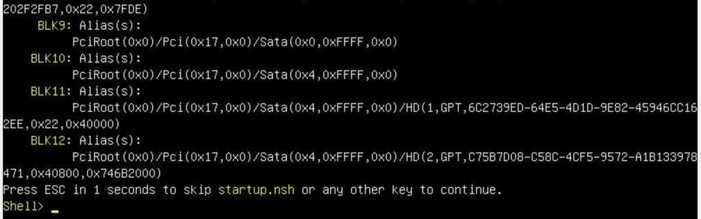 Für das Update habe ich den Server erst einmal mit der UEFI: Built-in EFI Shell gestartet.