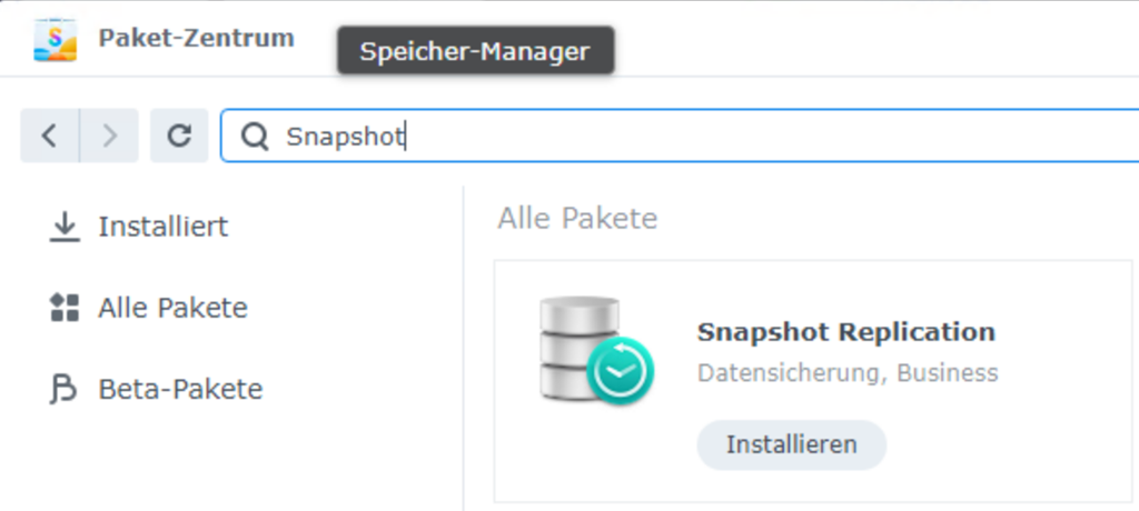 In einem ersten Schritt muss das Paket Snapshot Replication auf dem NAS installiert werden.
