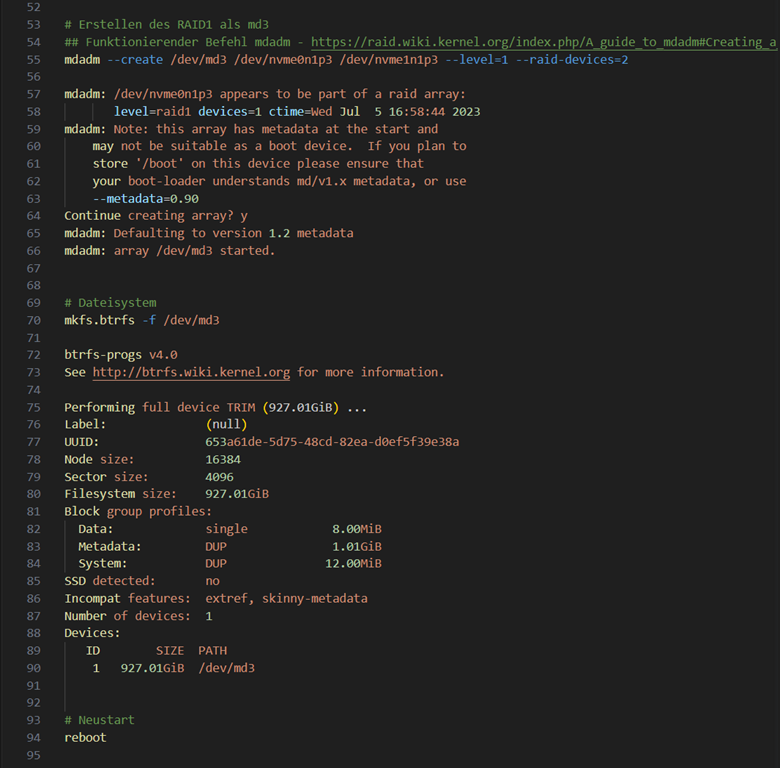 Konfiguration eines RAID1 mit Samsung NVMe-SSDs