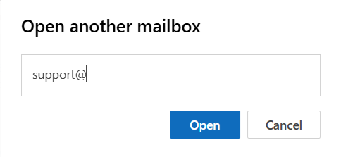 Dort den Link Open another mailbox oder ein anderes Postfach öffnen anklicken. Im sich öffnenden Fenster wird die Mail-Adresse des freigegebenen Postfachs eingetragen, zum Beispiel support@deinedomain.tld