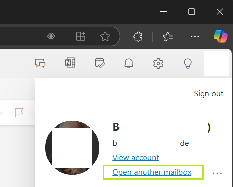 Öffnen von OWA und dem dort enthaltenen Kontomanager, rechts oben in der Ecke.