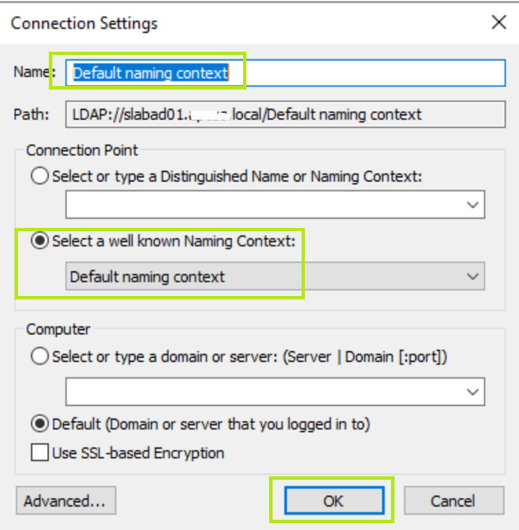 … ändern und hier bei der Änderung mit Apply und OK bestätigen. Da wir hier nur einen Domain Controller haben, brauchen wir hier keine weiteren Änderungen mehr in ADSIEDIT machen (es gibt ja keine weiteren DCs)!
