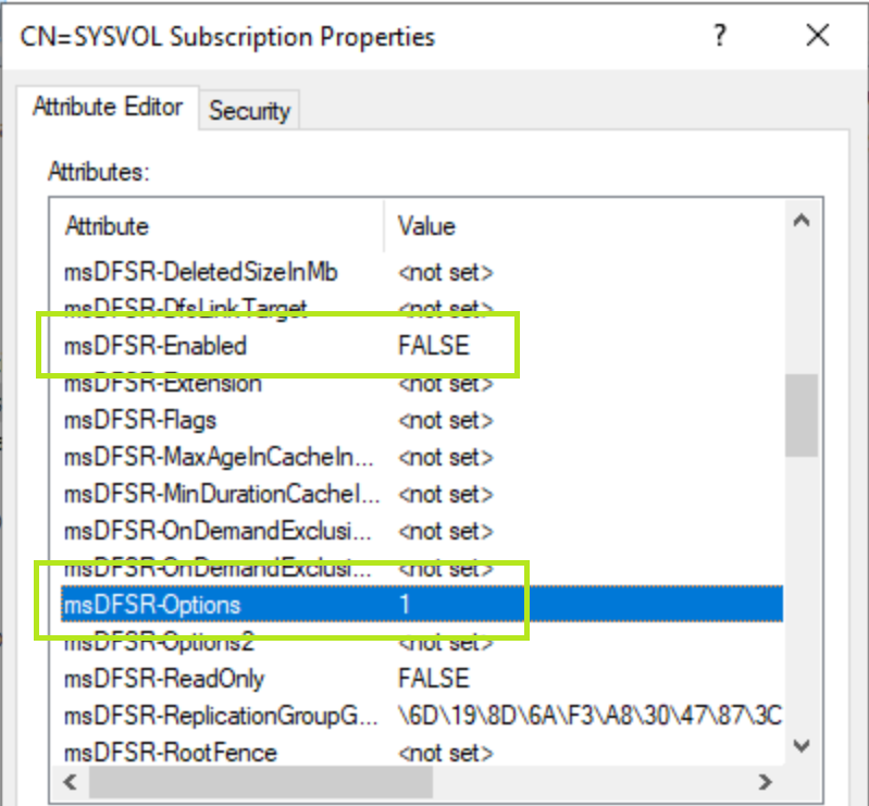 msDFSR-Enabled=TRUE