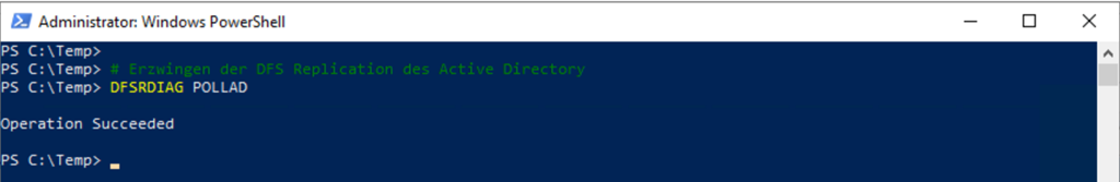 Danach führe wir noch den Befehl DFSRDIAG mit der Option POLLAD aus.