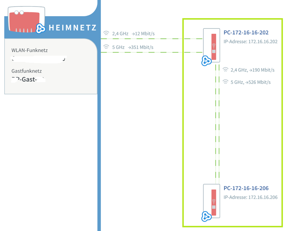 - Die FRITZ!Box propagiert sich als Router und DNS im Netzwerk