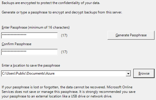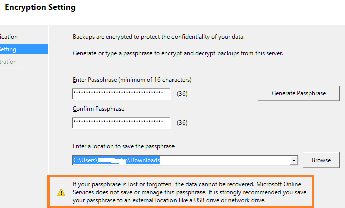 Die verwendete Passphrase wird als Textdatei im angegebenen Ordner abgelegt und sollte separat an einem sicheren Ort gespeichert werden.