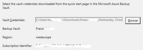 Wichtig: Zu diesem Zeitpunkt, also wenn noch keine Registrierung erfolgt ist, können Änderungen bzgl. der Verteilung des Vaults innerhalb von Azure festgelegt und geändert werden. Per Default wird ein Vault als LRS (Local Redundant Storage) angelegt, was bedeutet das die Daten innerhalb eines Azure Standorts redundant sind. Diese Einstellung kann auf GRS (Geo Redundant Storage) geändert werden.