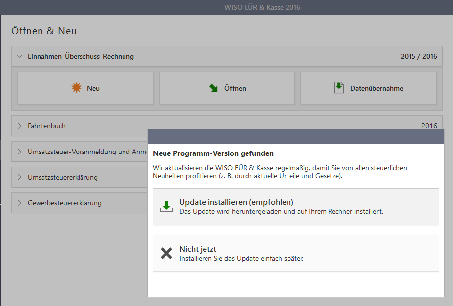Es gibt Programme die haben immer mal wieder besondere Eigenarten an sich. Die Produkte von Buhl gehören dazu. Nachdem sich WISO EüR & Kasse 2016 problemlos installieren ließ wurde ich mit folgender Meldung beim Programmstart begrüßt.