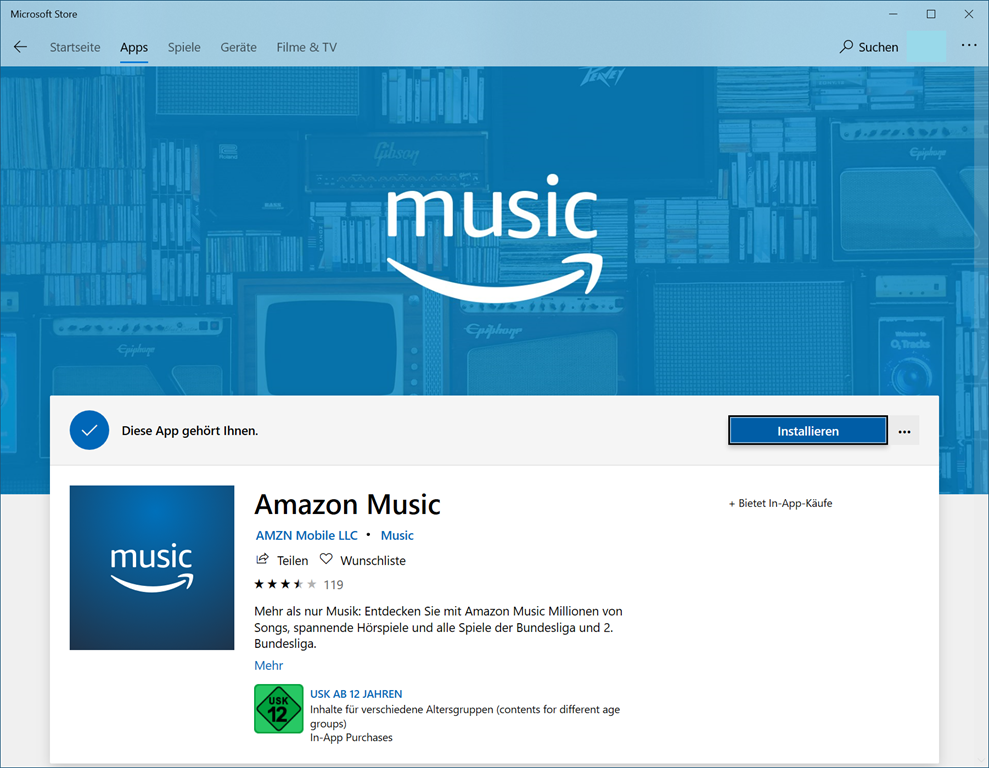 Amazon Music muss nicht zwingend an allen Stellen Informationen ablegen. Da auf dem Rechner noch Reste einer alten Installation vorhanden, habe ich alle Einträge gelöscht und danach aus dem WIndows Store Amazon Music erneut installiert.