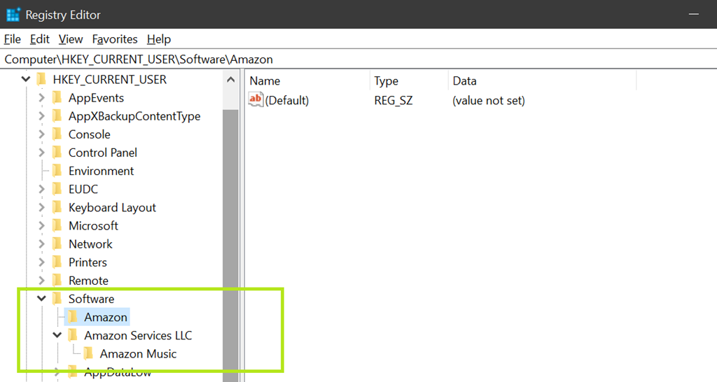 Nach der Deinstallation von Amazon Music, habe ich an den folgenden Stellen im Betriebssystem nach Fragmenten gesucht.
