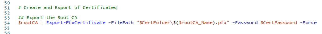 Nun werden auf demselben Knoten sowohl das Root-Zertifikat exportiert als auch die Server-Zertifikate erstellt.