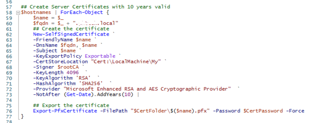 Auch bei der Erstellung der Server-Zertifikaten habe ich Änderungen vorgenommen: