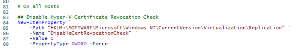 Auf allen Hyper-V Hosts muss nun die Prüfung der Zertifikate deaktiviert werden.