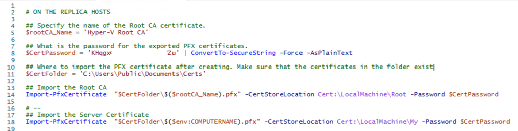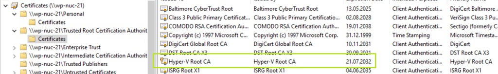 - Das Root-Zertifikat wird auf jedem Hyper-V-Host installiert, jeder Host erhält zusätzlich ein eigenes Server-Zertifikat.