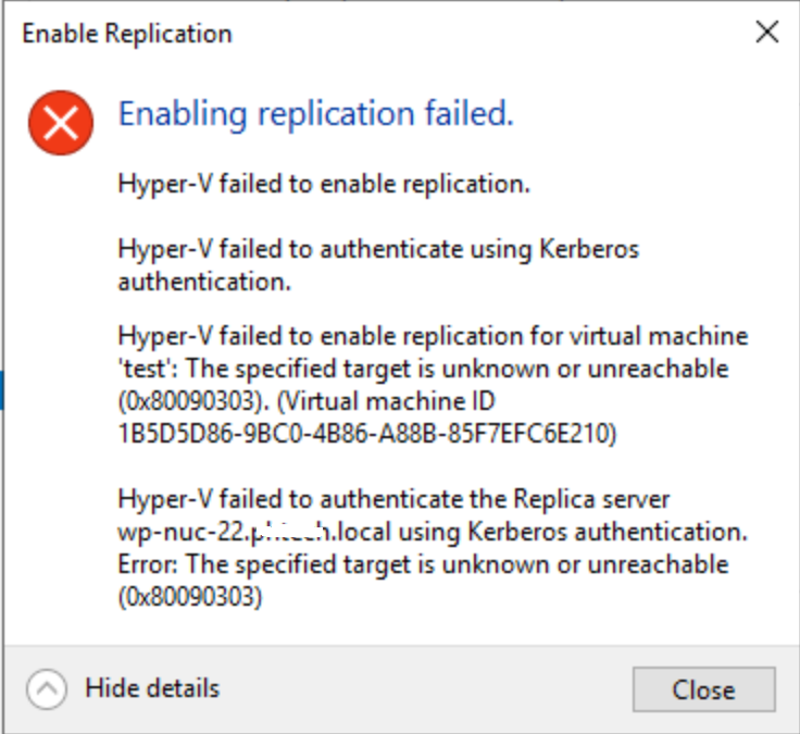 Die Hyper-V Replica wurde mit Windows Server 2012 eingeführt – was aber nicht zwingend bedeutet, dass die Domäne ebenfalls auf diesem Level sein muss. Ich vermute jedoch, dass hier – möglicherweise in Verbindung mit der Tatsache, dass intern Samba 4.10 läuft – das Problem liegt.