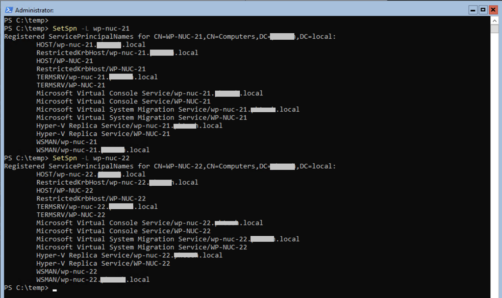 Die Namensauflösung funktionierte, und auch die ServicePrincipalNames waren registriert.
