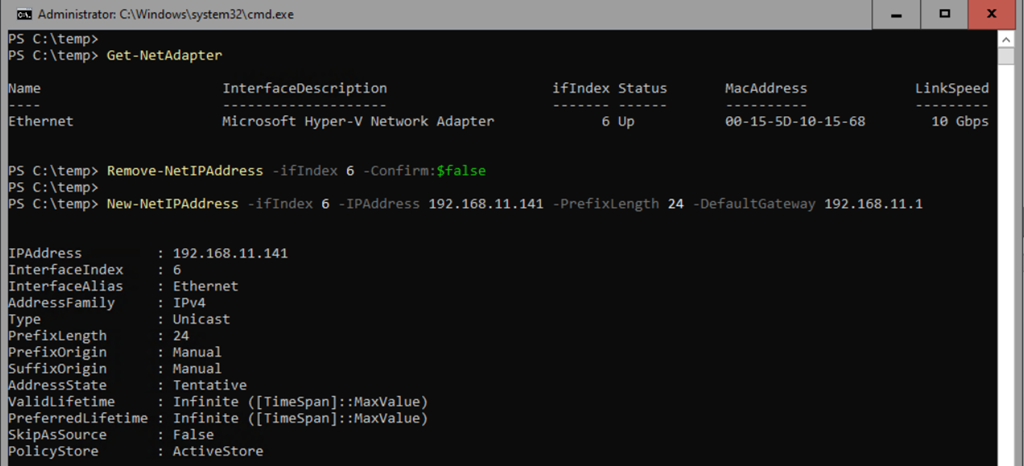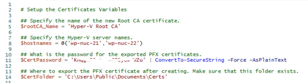 Auf dem ersten Host wird eine PowerShell-Sitzung als Administrator gestartet und die folgenden Variablen gesetzt:
