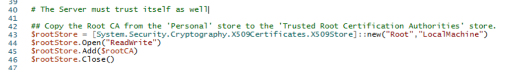 Der Server, auf dem das Root-Zertifikat wurde, muss diesem ebenfalls vertrauen. Darum wird das Zertifikat von Personal nach Trusted Root Certification Authorities kopiert.