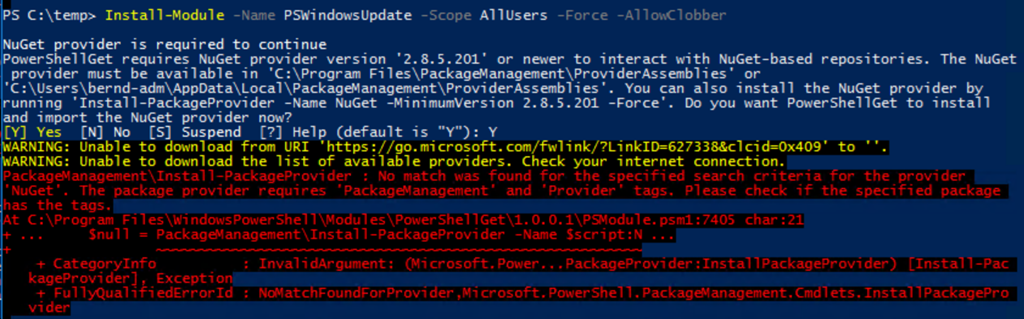 Allerdings wurde ich am Ende der Konfiguration mit folgender Fehlermeldung konfrontiert – und konnte zunächst nichts damit anfangen: