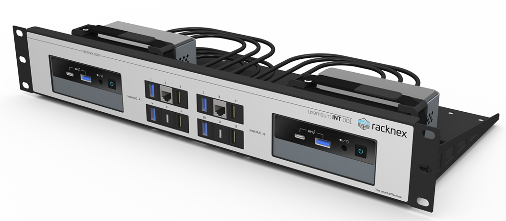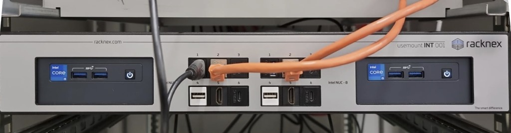 Darum musste auch hier eine Alternative her und war durch einen Zufall schnell gefunden. Während der Suche nach Treibern auf der Intel Homepage bin ich auf einen Artikel gestoßen, dass Intel NUC Systeme (zumindest einige von ihnen) 24×7 betrieben werden können. Bei fast allen meiner Kunden laufen die PCs ohnehin 24×7 und das nicht nur 3 oder 4 Jahre, insofern hatte ich keine Probleme mit der Vorstellung das sowas auch mit einem Intel NUC möglich wäre und sogar, im Falle von Intel, unterstützt wird. Eine Analyse der auf den Servern vorgehaltenen Kapazitäten ergab, dass zwei Intel NUCs mit dem i5 der 11ten Generation sowie 32GB Hauptspeicher und einer 2TB NVMe ausreichen würden. Das Ganze hat Brutto keine 2.000 € gekostet und konnte mit dem Rackmount von racknex sauber in das Rack eingebaut werden.