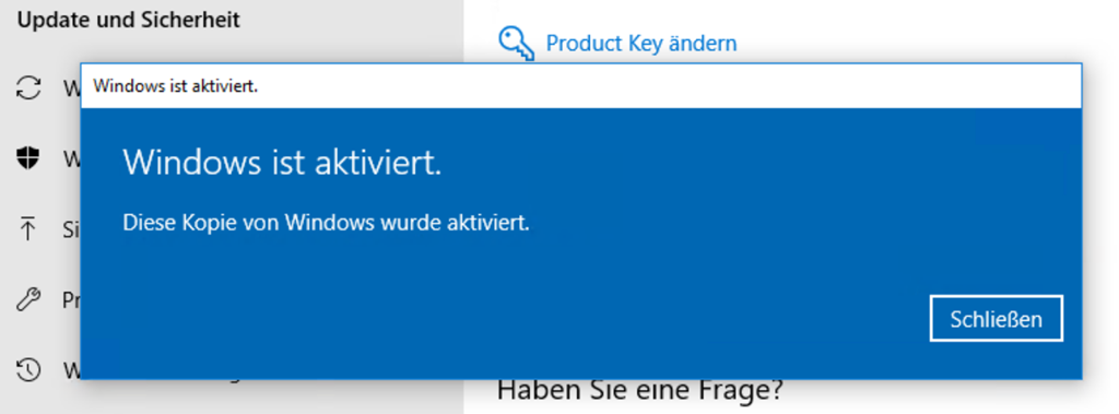 Nach der Aktualisierung und dem anschließenden Neustart funktioniert auch die Aktivierung und alle Anwendungen und Daten sind vorhanden.