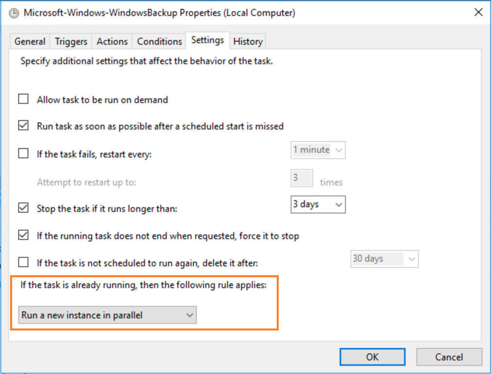 - If the task is already running, then the following rule applies = Do not start a new instance