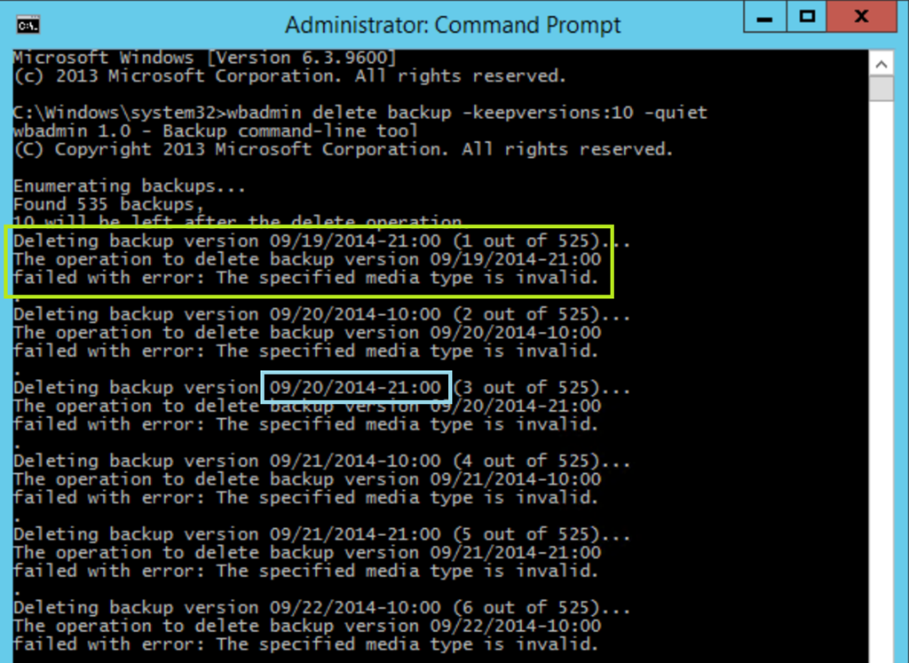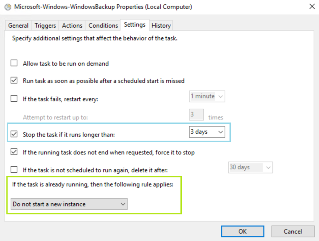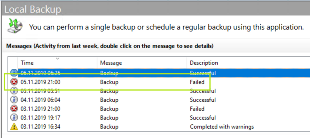 Damit geben wir dem Backup die Möglichkeit, so lange zu laufen bis die erste Sicherung erfolgt ist und vermeiden zusätzliche Windows Backup Failed Meldungen im Backup selbst.