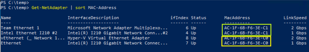 • TEAM Team Ethernet 1 = AC-1F-6B-F6-3E-C1